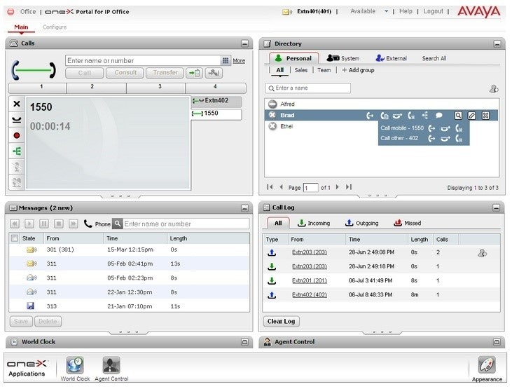 呼叫控制:结合Avaya多种话机终端,在网页界面发起/保留/恢复/挂断通话,控制会议轻而易举。